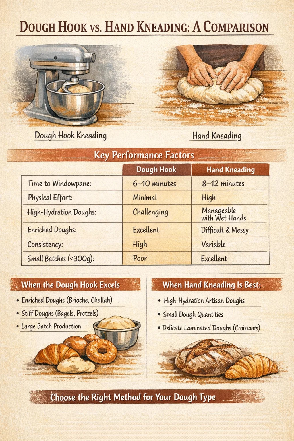 حکم نهایی: چه زمانی از قلاب خمیر استفاده کنیم و چه زمانی با دست ورز دهیم